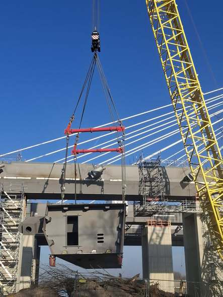 Brückenteile werden montiert.
